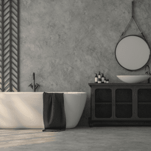 Another durable and stylish choice for bathroom flooring that has become a trend in recent years is concrete flooring. Concrete flooring lends a modern, industrial look. It can be poured using local ingredients, lending to its green appeal. Concrete handles water well if appropriately sealed. Maintaining the seal will require ongoing yearly maintenance.